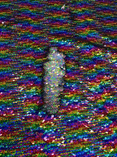 Multi Color Rainbow Reversible Geometric Stretch Sequins On 2 Way Stretch Mesh Sequins Fabric By Yard