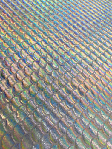 Mermaid Fish Scales Spandex Fabric White/Silver Iridescent Sold By Yard