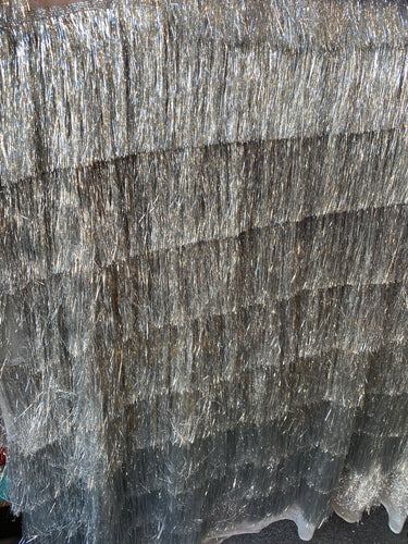 Sparkled Ruffled Eyelash Designs 2 Way Streatch Mesh Lace Fabric By The Yard Silver