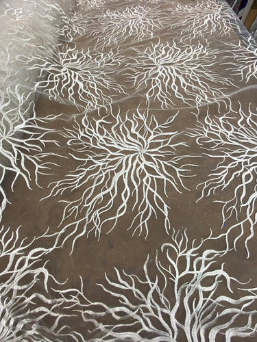 White Root Designs Mesh Lace Fabric With Double Border By Yard