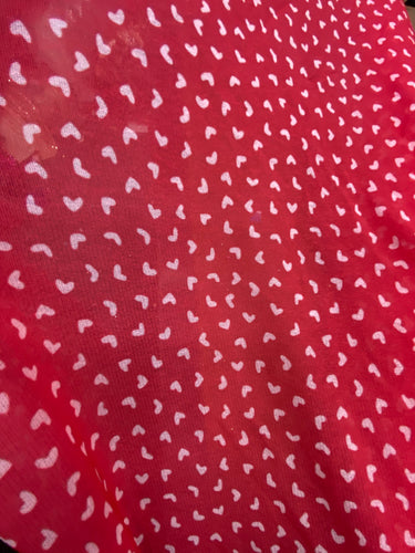 White Mini Hearts Prints on Red Mesh Fabric Fabric By Yard
