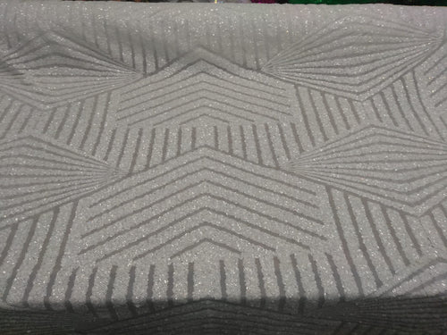 White Geometric Stretch 4 Way Mesh Sequins Fabric By Yard